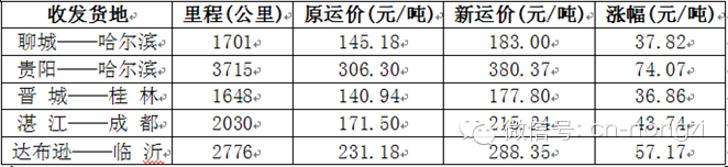 (***注:上表所写运费未考虑电气化等其它收费和杂费,所以并非实际运费)