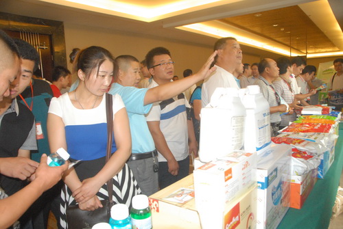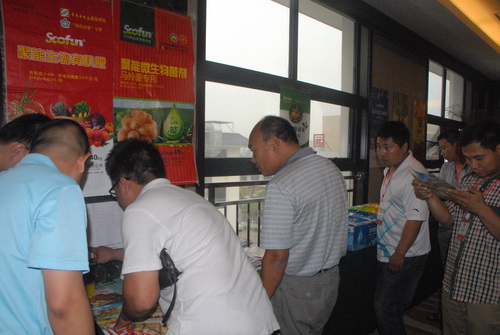 会议中途休息期间,经销商们在施可丰产品展示厅仔细观看 会上,来自青岛胶州的徐振兴和蒙阴县的李瑞全分享了与施可丰走过的日子,来自蒙阴县的李瑞全于2010年与施可丰合作,2011年卖了780吨,其中新型肥料950吨,2012年2200吨,其中新型肥料1650吨,今年是3000吨的销售协议,获得逐步提升的原因他归结了三点:一、施可丰产品质量稳定,农民认可度和回头率高;二、施可丰营销理念高端,站在行业高端不断探讨营销新思路;三、施可丰化工业务人员不断壮大,业务员素质高,有敬业精神。来自青岛胶州的徐振兴用五个“更”,总结了与施可丰“深一步合作”的坚信:更多更好的产品,更好的产品宣传,更优秀的服务,更大的利润,更大的发展空间。