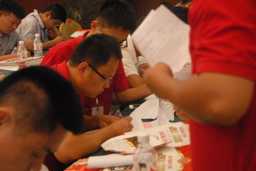 来自青岛胶州的徐振兴分享经验 不仅建立“根据地”,而且还要打造一支“攻无不克、战无不胜的特种部队”,培养出“有思想、有境界、价值观统一、有能力的特种经销商”,为此,他们专门成立了商学院,施可丰新型肥料公司总经理王程永成为了施可丰商学院院长,“打造信仰的营销团队,引领一支有魂的经销商团队”是商学院成立的主要任务,这是企业注入教育培训的资源,对经销商的关怀和人性化的管理,不仅从根本上解决赊销、竞争、业绩不稳定的问题等等,同时解决包括子女教育、人际关系等问题。 来自蒙阴县的李瑞全分享经验