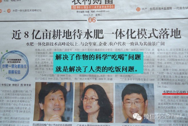 大面积应用水溶肥料的场合: 所有有设施灌溉的地方都可以用水溶肥料。通过灌溉设施施肥称为“水肥一体化管理”。 2014年3月13日,中国氮肥工业协会水溶肥专委会正式成立。