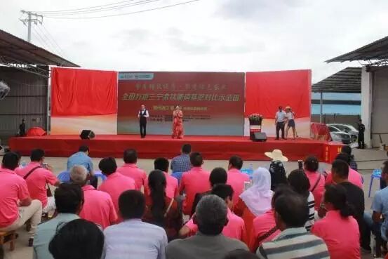 中国新型肥料网讯:9月9日,“节本增效提质、推进绿色农业 全国万亩三宁金钛能硝基肥对比示范田 取代进口第二季”云南站启动仪式,在云南省蒙自市草坝镇顺利召开。中国化工报社副社长张健秋、湖北三宁化工股份有限公司副总经理毛国斌、中国农业科学院作物科学研究所研究员董志强、红河州原土肥站站长陆永生、蒙自市草坝镇镇长郭宇、云南中农农资有限公司总经理盛贵林等领导嘉宾,及来自周边地区的经销商、种田大户等代表共2000余人参与了此次会议。
