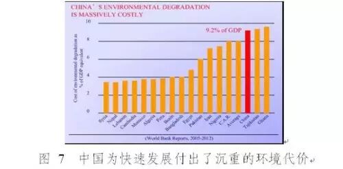 3、大气中微生物繁殖条件分析 微生物繁殖条件是温度、水分、氧气和养分。研究发现,微生物温度适应能力强,在水分蒸发进入大气,随空气温度降低会再次凝结,冬季成霜,春季成雾;物体悬浮状态接触空气面积最大,使吸附在凝结核表面微生物获得充分氧气。 微生物生长最重要的养分是氨氮,氨氮融入气溶胶与微生物相遇,成为微生物快速繁殖的营养剂。氨氮来源于土壤和水源富营养化污染。改革开放以来,中国经济快速发展,也带来严重环境代价,图7显示中国2012年GDP增长7.8%,外部环境损失占GDP的9.2%。