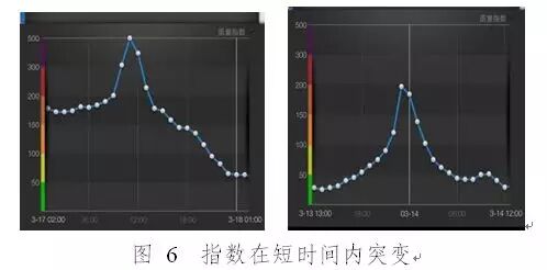 附 着在气溶胶颗粒上的微生物在适宜条件下迅速繁殖,使气溶胶体积迅速增大,最终形成雾霾。如常温常压下,气溶胶颗粒只有0.1微米,但随微生物迅速繁殖,体 积可迅速增长到2.5微米、5微米,甚至10微米。图6显示雾霾指数突变,左图最高点在中午12∶00附近;右图最高点在凌晨00∶00附近。按传统解 释,指数高点应有污染突发性事故发生,但事实上并没有,这只能用微生物快速分裂解释。