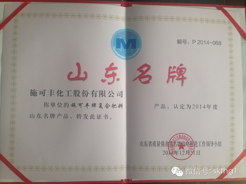 近日,公司收到由山东省名牌战略推进工作领导小组颁发的山东名牌产品证书,我公司生产的“施可丰”牌复合肥料荣获2014年度“山东名牌产品”称号。“山东名牌产品”是山东省大力实施名牌战略的具体举措,旨在培育形成一批具有较强国际、国内市场竞争力的优势企业,提高山东省产品质量水平。据了解,此次山东名牌产品认定目录为历年最少、认定条件为历年最严,全省认定名牌数量较往年大幅下降,在复混(合)肥料产品方面仅保留6家企业产品名额,竞争尤为激烈。 |