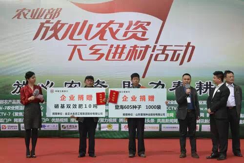 “布谷飞飞劝早耕,春锄扑扑趁初晴”,一场春雨滋润了万物。一大早,山东齐河县表白寺镇农民杨明富冒雨赶到镇中心广场,他期待着一场既有农业致富新政策,又有放心农资知识普及的精彩文化演出。 “放心农资,下乡进村”公益活动现场 4月 12日,由农业部、CCTV-7农业频道等部门共同主办的“2015农业部放心农资,下乡进村”公益活动走进山东齐河。杨明富使用的金正大肥料,被农业部 列为放心农资产品,陈列在活动现场的显著位置,这也是金正大作为“CCTV7公益联盟企业”连续四年参加春耕公益活动,累计捐赠各类肥料300多吨。 化 肥作为春耕生产最重要的农资产品之一,直接关系着我国的粮食安全。活动现场,十几家爱心农资企业组成的公益企业联盟,现场捐赠了价值50余万元的农用物 资,助力放心农资下乡进村。金正大集团总裁助理兼临沭公司总经理杨富裕代表公益联盟企业,将10吨优质金正大硝基双效肥赠送给种植大户代表。杨富裕郑重承 诺,为让农民用上放心、高效的肥料产品,金正大严把质量关,按照“袋袋是精品”的原则,全面实现质量提升与肥效升级,绝对不让一粒不合格肥料流入市场。杨 富裕还表示,在提供给农民放心产品的同时,金正大还将依托农化服务中心提供测土配肥、种肥同播、培训讲座、现场指导等专业服务,把产品、技术、服务带村入 户。