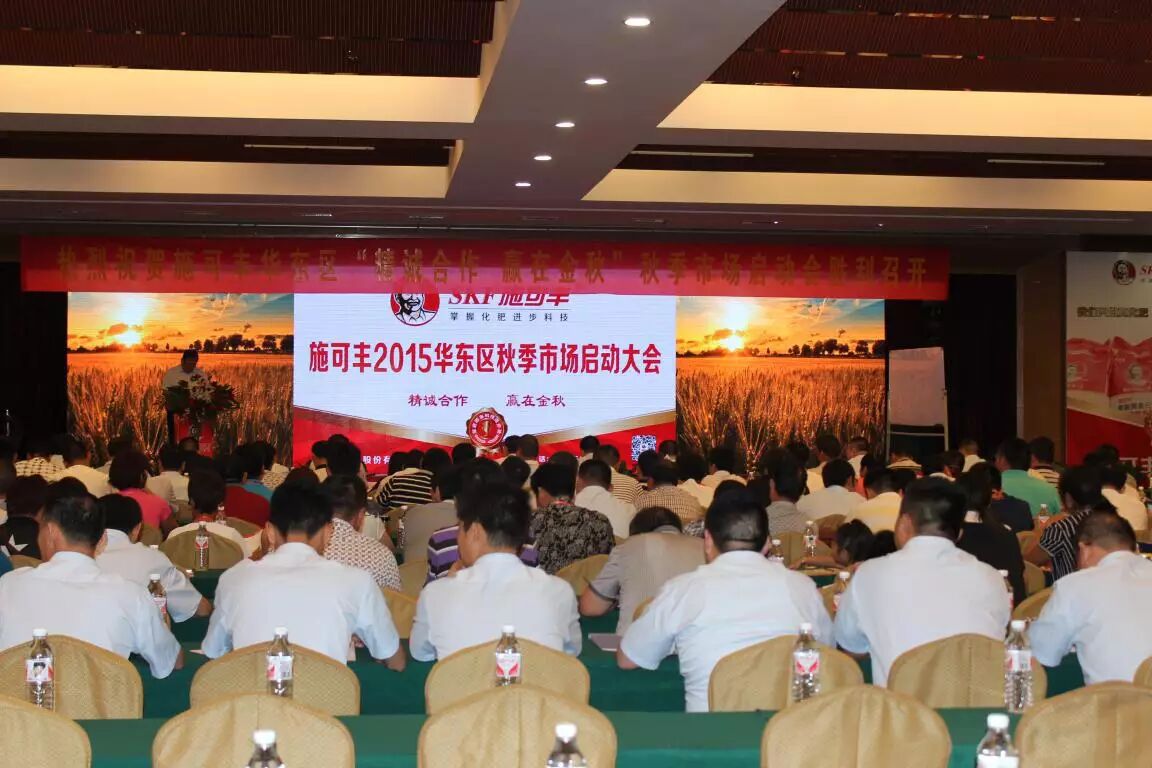 “麦能量”系列产品隆重推出 会议现场 中国新型肥料网讯:继北方秋季市场的成功拉动,7月4日, 施可丰又马不停蹄,聚焦华东区,开启2015华东区秋季市场——施可丰华东区精诚合作、赢在金秋秋季市场。会上,施可丰华东区邀请到肥料行业营销专家为经销商做专业化培训,并隆重启动亿元促销活动,吸引了来自江苏、安徽、河南三省的百余名经销商参会。 施可丰董事长解永军致辞