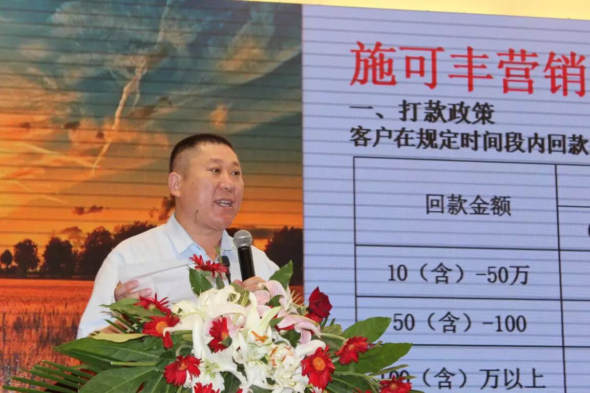 秋季市场是最重要的销售季节之一,对于经销商完成全年销量目标至关重要。据了解,随着施可丰近几年的发展,万家终端打造和后台管理能力的提升,施可丰将在8月份中旬正式开启全国终端活动。市场部部长王长亮在会上做了“丰硕金秋 惠动中国”大型终端促销活动的报告,围绕促销方式、促销对象和具体的实施方式展开。他表示,成功的促销可以在顾客心中留下良好的企业形象,让顾客更清晰的了解企业和产品,认同企业文化,提升品牌影响能力,从而加强产品的认可度和销售量。 施可丰华东区总监梁培仕推出秋季肥料销售政策
