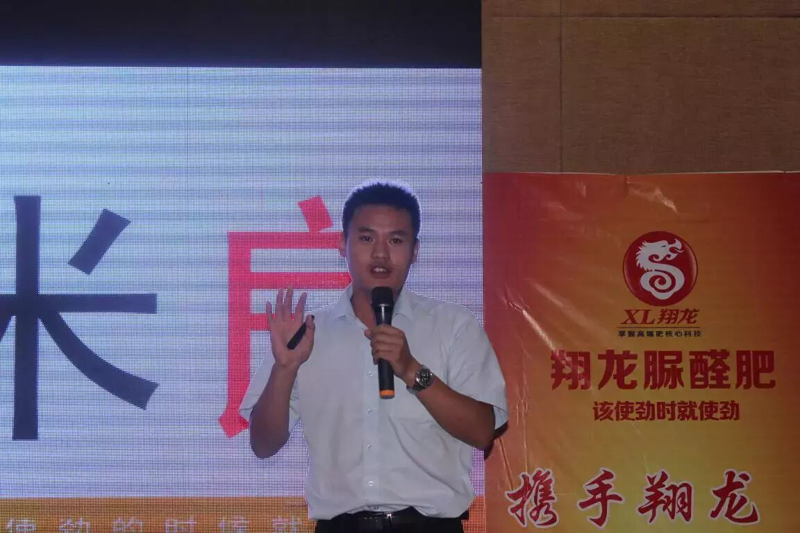 面对波云诡谲的农资行业,处于转型期的经销商更加人心惶惶。翔龙集团总裁徐辑孟审时度势引导经销商关注新趋势,尝试新的营销模式,平复经销商的担忧。他表示,经销商对数字化的革命和挑战无需惊慌失措,翔龙事业部将根据客户的不同情况,与经销商一同开发农场主和合作社,一起攻克目前新型经营主体的问题和需求。 翔龙事业部高级农艺师李家利做报告 随着普通肥料的弊端日益显现,翔龙集团积极响应国家减肥政策,翔龙脲醛肥应运而生。据高级农艺师李家利介绍,脲醛缓释长效肥特别添加黄腐酸钾,具有改良土壤团粒结构、固氮、解磷、活化钾、强化植物根系的附着力和快速吸收能力,特别是对由于缺乏微量元素而导致的生理病害有明显的效果。