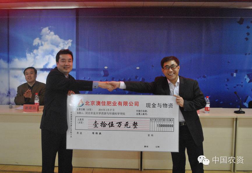 中国新型肥料网讯: 北京澳佳肥业与河北农大的合作由来已久,由最初的毕业生实训基地落户澳佳,到双方的校企合作正式敲定,已过去了两年多。近来,双方的合作又有了新花样,澳佳肥业针对河北农大资环学院每个学生家庭农业种植情况,量身打造作物种植解决方案,并派遣农化人员将套餐肥料、施肥的农技知识一并送到田间地头。这一尝试收到了良好的反馈,为澳佳肥业践行深入细致的套餐施肥、农化下乡打下基础。 谈及澳佳肥业与河北农大的合作,要从两年前说起。2013年6月,河北农业大学资源与环境科学学院毕业生实训基地正式落户北京澳佳肥业。在就业难的形势下,校企进行合作,探索培养技能型人才新模式,符合社会发展方向。专家引领、行业支持、企业参与是校企合作的必由之路,也是当今大学生职业规划的坚实依托。 2014年3月,澳佳肥业与河北农大资环学院举行了校企合作签字仪式,标志着双方“产、学、研”全面合作正式敲定。在此合作之下,澳佳肥业不仅会为学院学生提供很好的实习实训机会,还会为毕业生提供很好的就业机会,同时,澳佳肥业还捐助10余万元资助学院的科研项目,包括免费肥料产品的提供。 近来,澳佳肥业与河北农大的合作再添新花样:澳佳肥业的农化服务工作人员通过对农大学生以及家长的电话采访,根据每位学生家庭不同种植情况,制定出不同的作物种植方案。5月份的时候,免费的套餐肥料全部配送到学生家中。