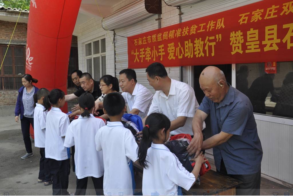 为代家沟村捐助15吨配方肥 举办“大手牵小手 爱心助教行”活动,为石碑村小学送去了43个新书包和86套校服。