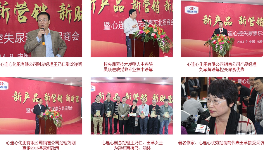 中国新型肥料网独家报道:2014年9月25日,“新产品 新营销 新财富暨心连心控失尿素东北招商会”在北国春城长春顺利召开。会上,河南心连心化肥有限公司隆重推出了控失尿素和示范户的种植效果,200多名经销商对新产品引起了浓厚兴趣,纷纷踊跃订货,现场气氛热烈。 |